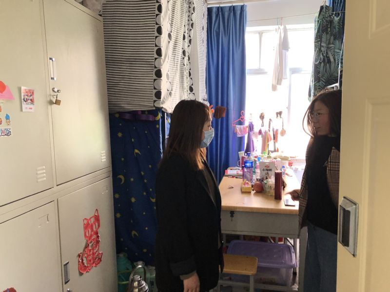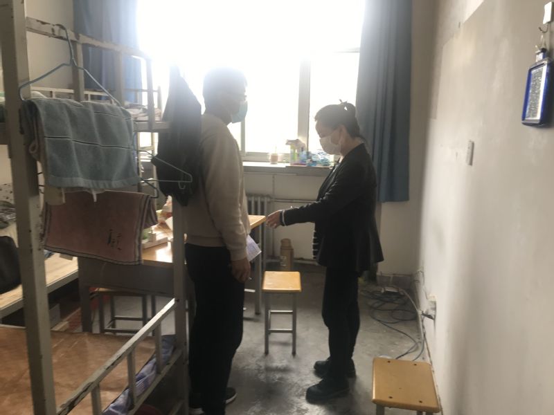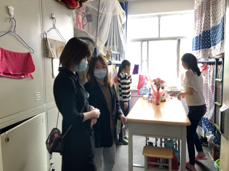 检查过程中,重点针对男女生宿舍内的卫生、床铺、物品摆放等方面进行指导,与学生进行了深入的沟通与交流,叮嘱学生要严格按照学校防疫工作通知要求,配合学校做好相关防疫工作,告诉学生要勤开窗通风,及时关注学校防疫工作动态,特殊时期,要佩戴好口罩,勤洗手,做好自身体温监测和晨、午、晚上报,不要随意外出,保持宿舍卫生清洁、通风,不互相串门,注意个人防护。