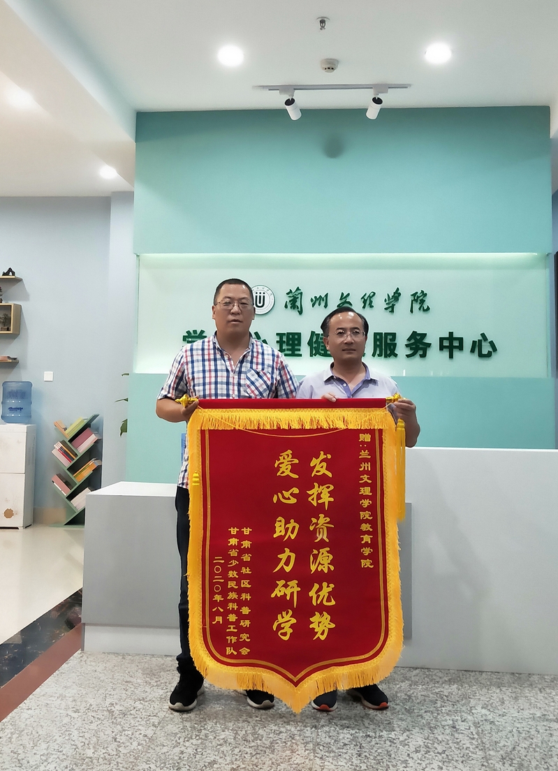 9月5日新学期之际,一面绣着“发挥资源优势 爱心助力研学”的锦旗由甘肃省少数民族科普工作队、甘肃省社区科普研究会送到了金沙2004路线js5。这是金沙2004路线js5党总支为推进“不忘初心、牢记使命”主题教育的深入开展,丰富总支党员主题教育的学习实践形式,加强学院与社会组织的联系,加强对学生预备党员和入党积极分子的培养教育,增进学院师生的社会责任感,组织专业学生开展社会服务活动的结果。